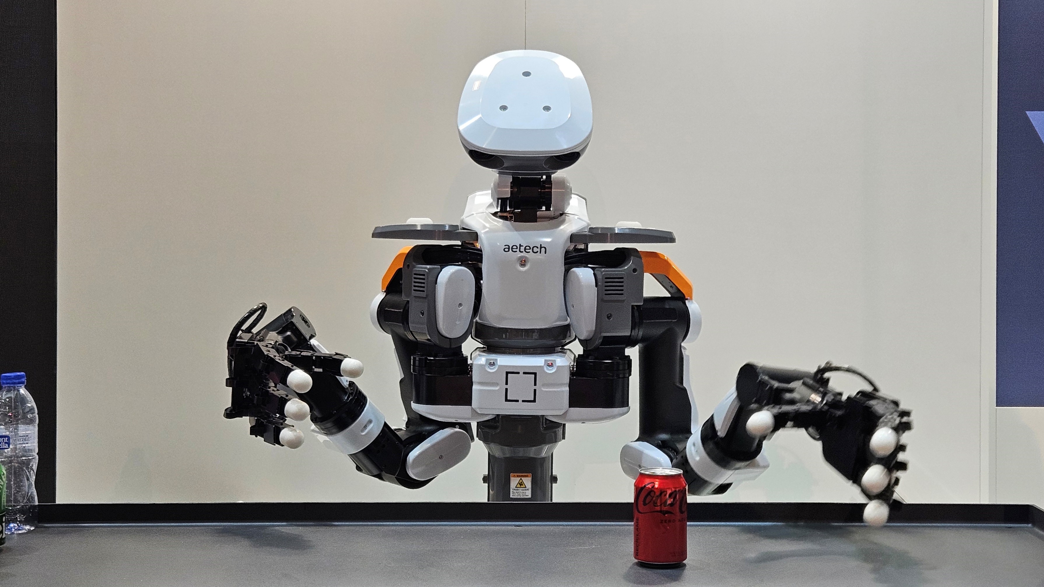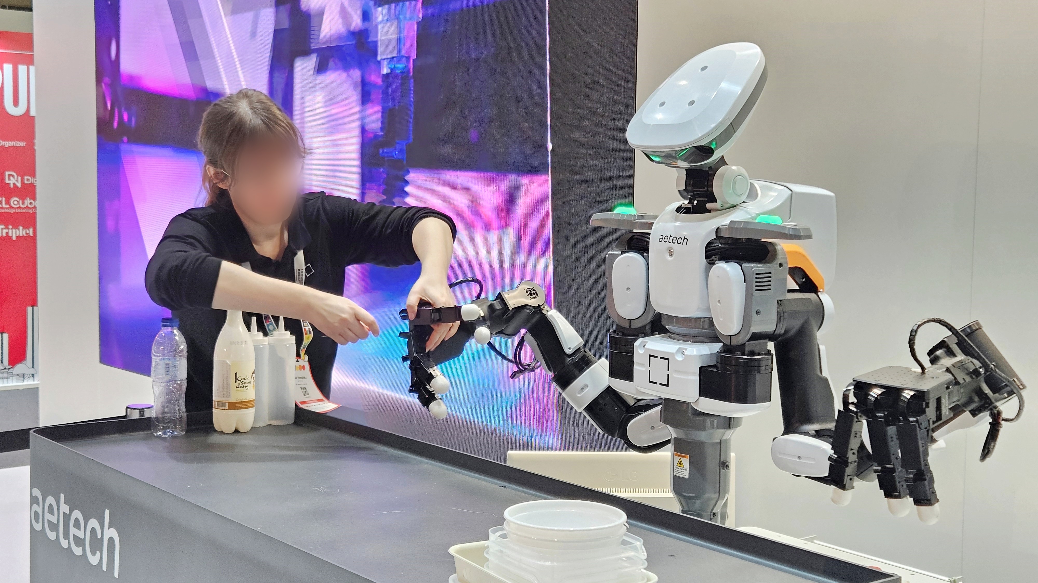 As a side note, we produced stickers containing our brand message at this exhibition to help better understand Aetech's brand philosophy. Since such merchandise is not common at business exhibitions, it was particularly popular among the young visitors attending the exhibition! The humanoid robot's performance also played a significant role in grabbing the attention of children.