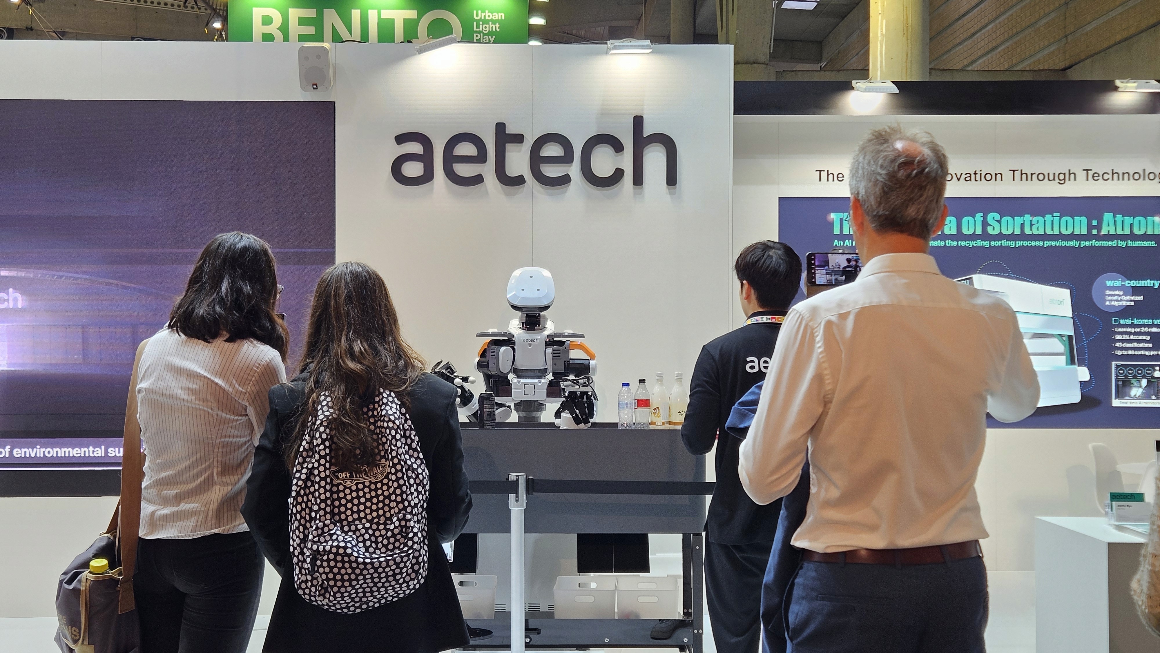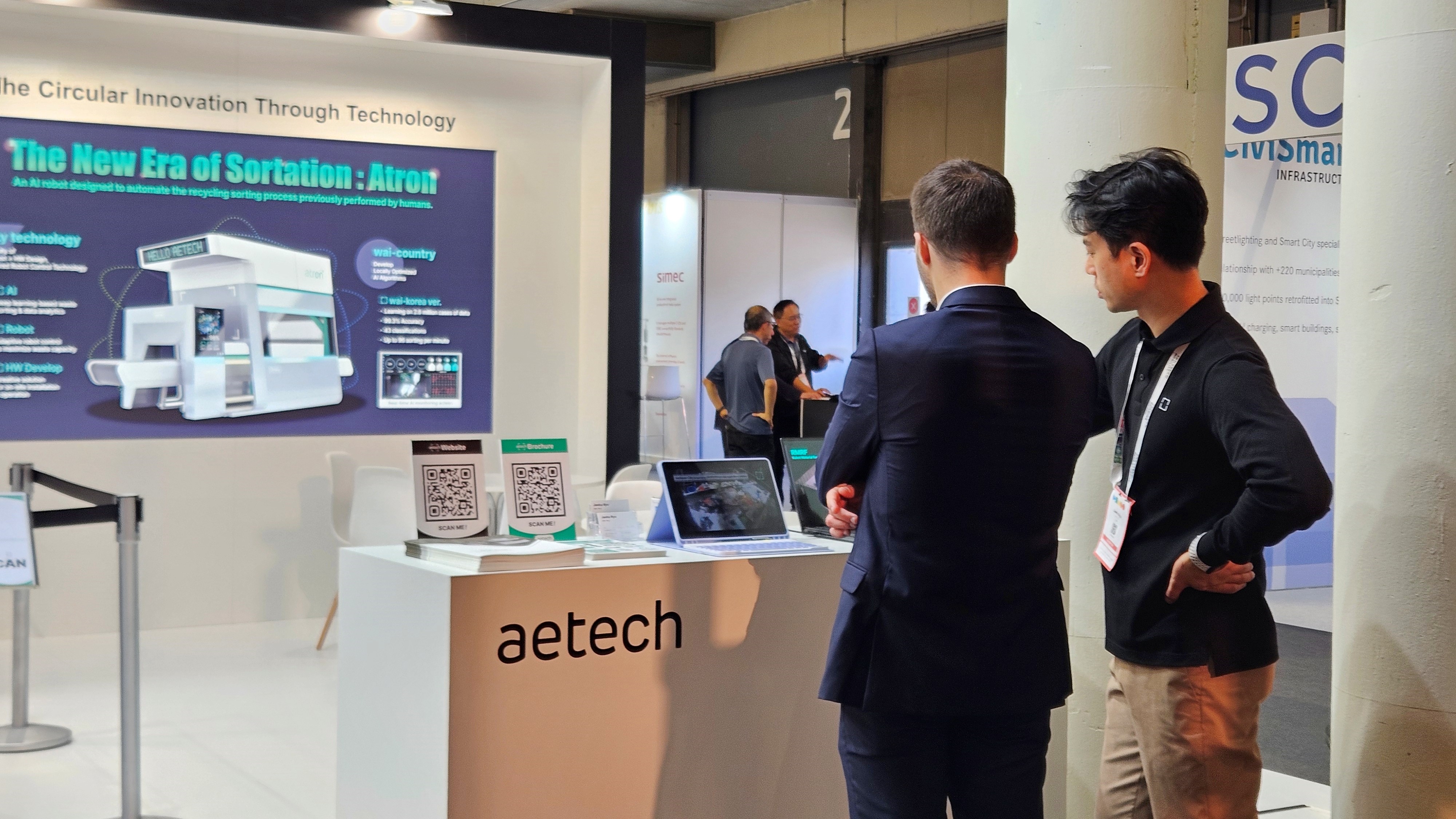 Aetech is a startup that dreams of a smart city where robots sort waste. With this corporate mission, it has consistently participated in the SCEWC exhibition in Spain since 2021. This year, it received explosive interest by showcasing the humanoid type Atron at the largest exhibition booth among Korean private companies participating in SCEWC. (It was even highlighted on the main page of the SCEWC website gallery after the exhibition ended!)